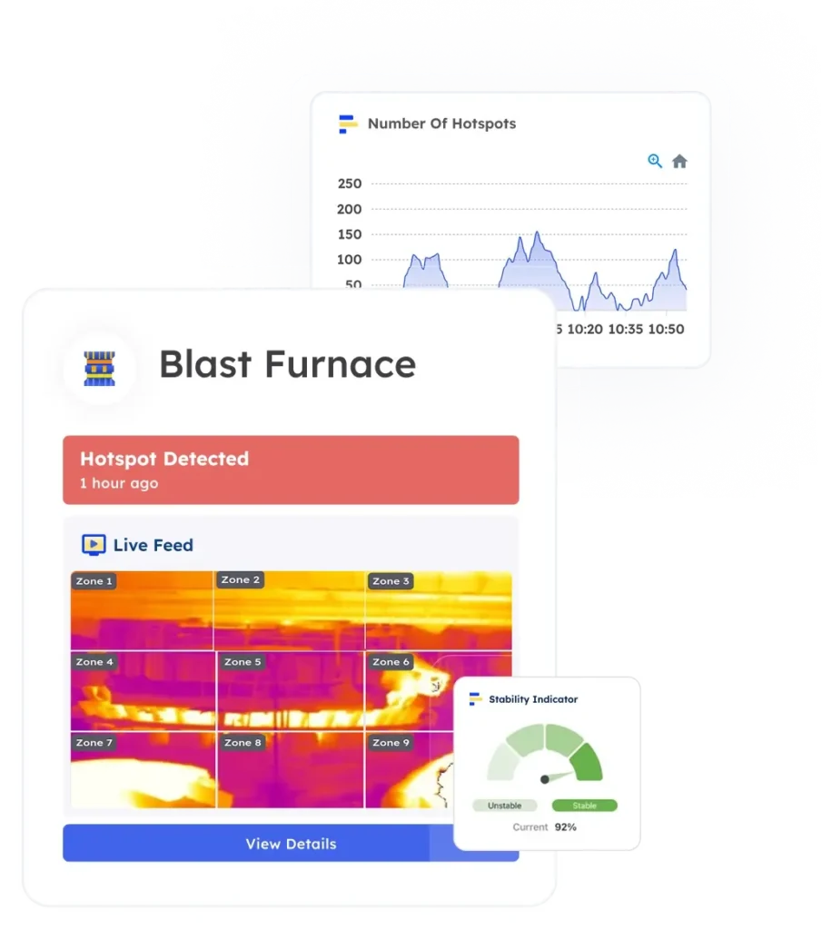 AI Stability Monitoring: Vision AI models continuously monitors thermal, pressure profiles, and raw materials to provide early alerts and AI-driven recommendations, optimizing burden distribution and furnace performance.