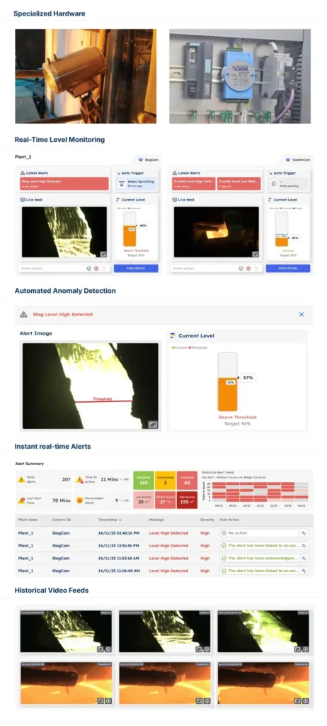 The computer vision–based level monitoring platform enabled operators to take timely action by reducing molten metal inflow when high levels were detected, restricting access to unsafe areas for enhanced worker safety, and making prompt operational adjustments to maintain optimal furnace conditions and prevent disruptions.